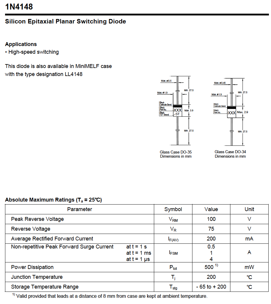 廠家直銷玻璃開關(guān)二極管 1N4148,1N4448 DO-35